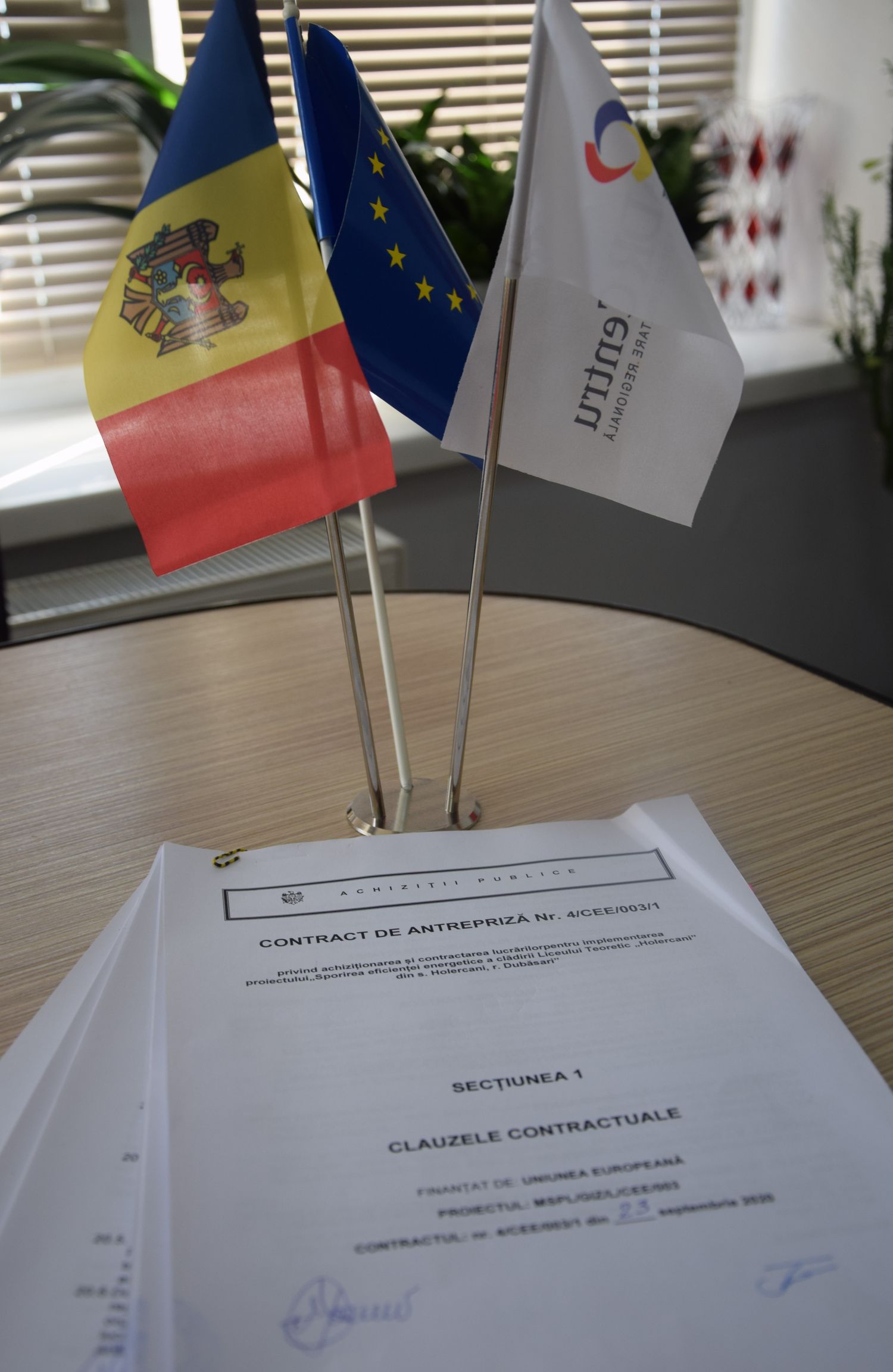 Prima - Noutăți - Cu suportul financiar din partea Uniunii Europene, au fost semnate noi contracte în valoare de circa 15 milioane lei, în vederea sporirii eficienței energetice a liceului teoretic „Holercani” r-ul Dubăsari