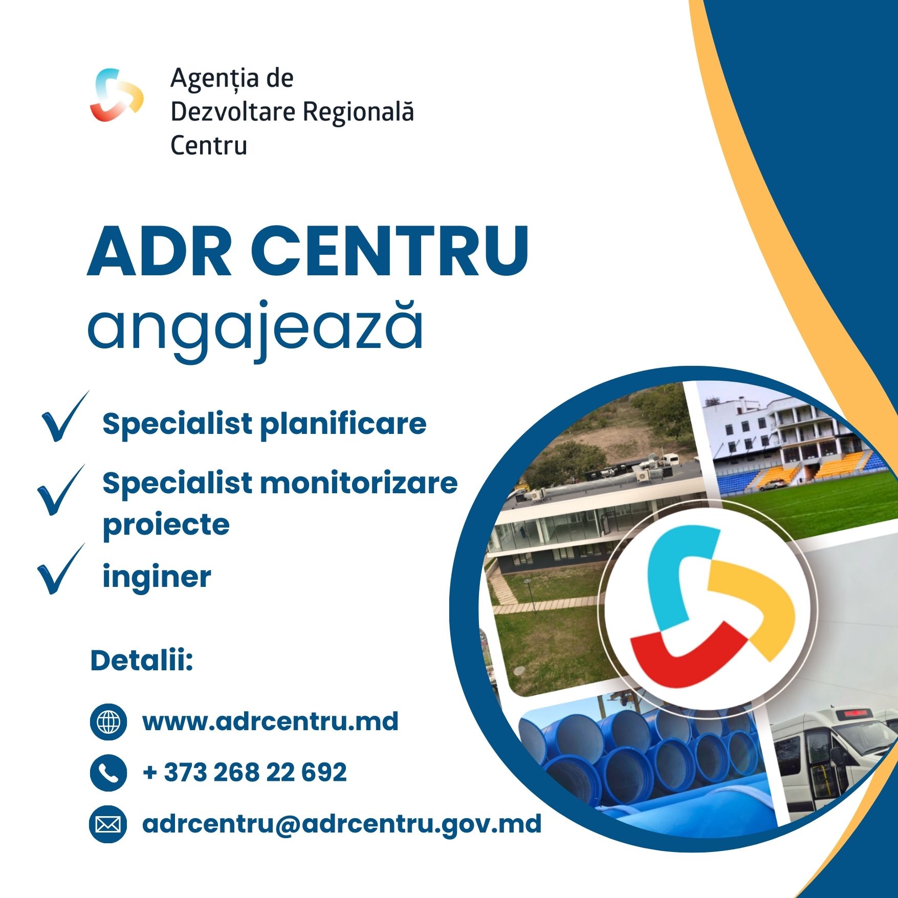 Agenția de Dezvoltare Regională Centru anunță organizarea concursului pentru suplinirea a trei funcții vacante din cadrul instituției. Funcții scoase la concurs: 1. Secția Planificare și Cooperare Regională Scopul general al funcției vacante: Realizarea procesului de planificare strategică și programare în Regiunea de Dezvoltare Centru prin analiza necesităților și oportunităților de dezvoltare a regiunii, elaborarea documentelor de politici regionale și de programare, precum și stimularea cooperării actorilor regionali în vederea atingerii obiectivelor de dezvoltare regională. 2. Direcția Managementul Integrat al Proiectelor Scopul general al funcției vacante: Asigurarea monitorizării implementării proiectelor de dezvoltare regională în condiţii de eficienţă, calitate şi conformitate (respectarea termenelor, bugetului şi indicatorilor). 3. Unitatea de Implementare a Proiectelor Externe cu Finanțare Germană Scopul general al funcției vacante: Coordonarea, implementarea și monitorizarea tuturor activităților tehnice aferente proiectului „Îmbunătățirea infrastructurii de apă în Moldova Centrală", asigurând realizarea lucrărilor în conformitate cu documentația tehnică, standardele de calitate, graficul de execuție și cerințele finanțatorului. Termen-limită pentru depunerea dosarelor: 04 martie curent. Modalitatea de depunere a dosarelor: Pentru informații suplimentare: (268) 2 26 92. Vă încurajăm să aplicați și să contribuiți la implementarea proiectelor de dezvoltare regională în Regiunea Centru. |