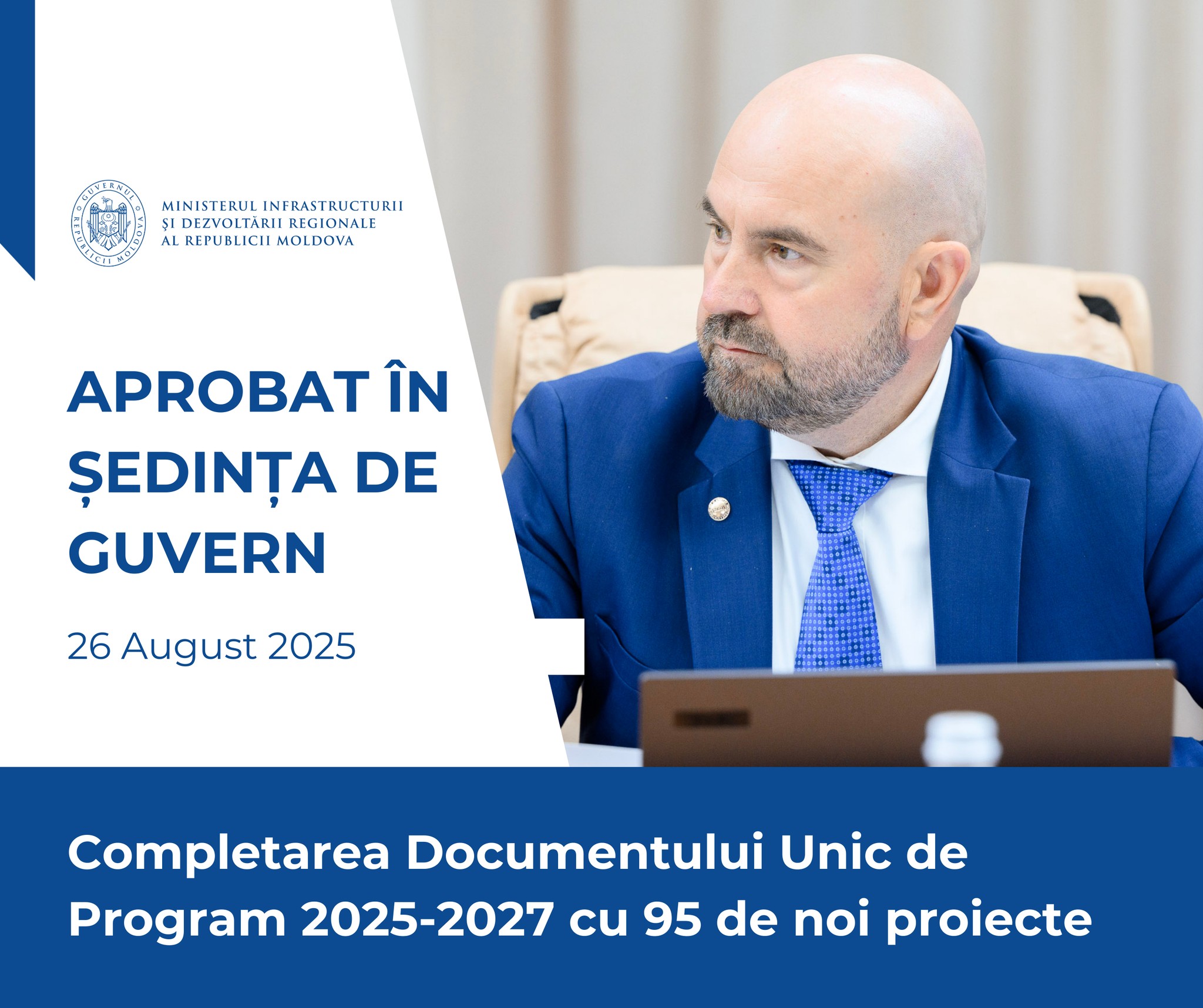 Prima - Noutăți - Guvernul a aprobat astăzi completarea Documentului unic de program pentru anii 2025-2027, prin care vor fi finanțate 95 de proiecte noi de dezvoltare regională și locală în toată țara