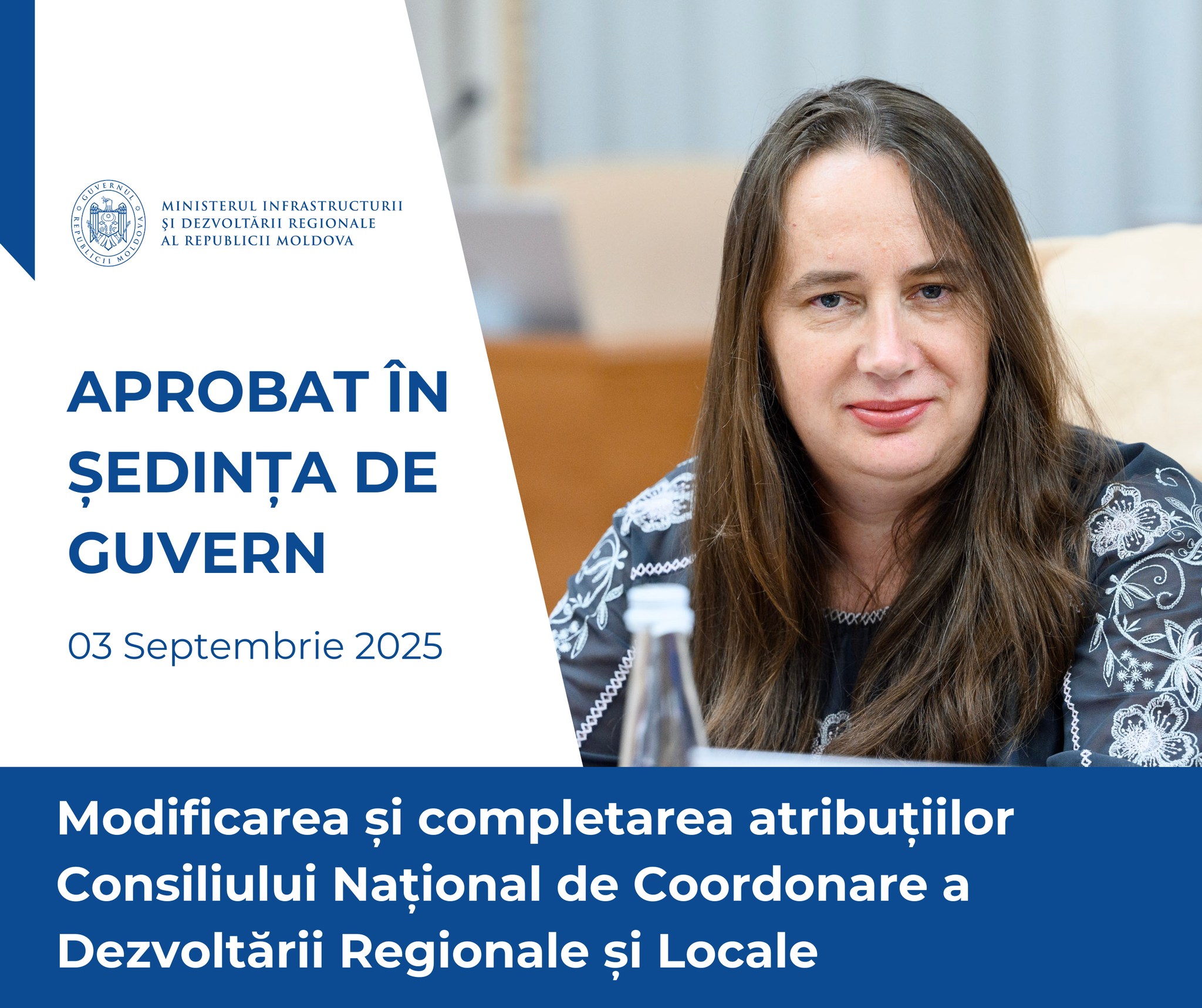 Cabinetul de miniștri a aprobat, astăzi, proiectul de hotărâre privind modificarea și completarea atribuțiilor Consiliului Național de Coordonare a Dezvoltării Regionale și Locale (CNCDRL). Noile prevederi vizează: