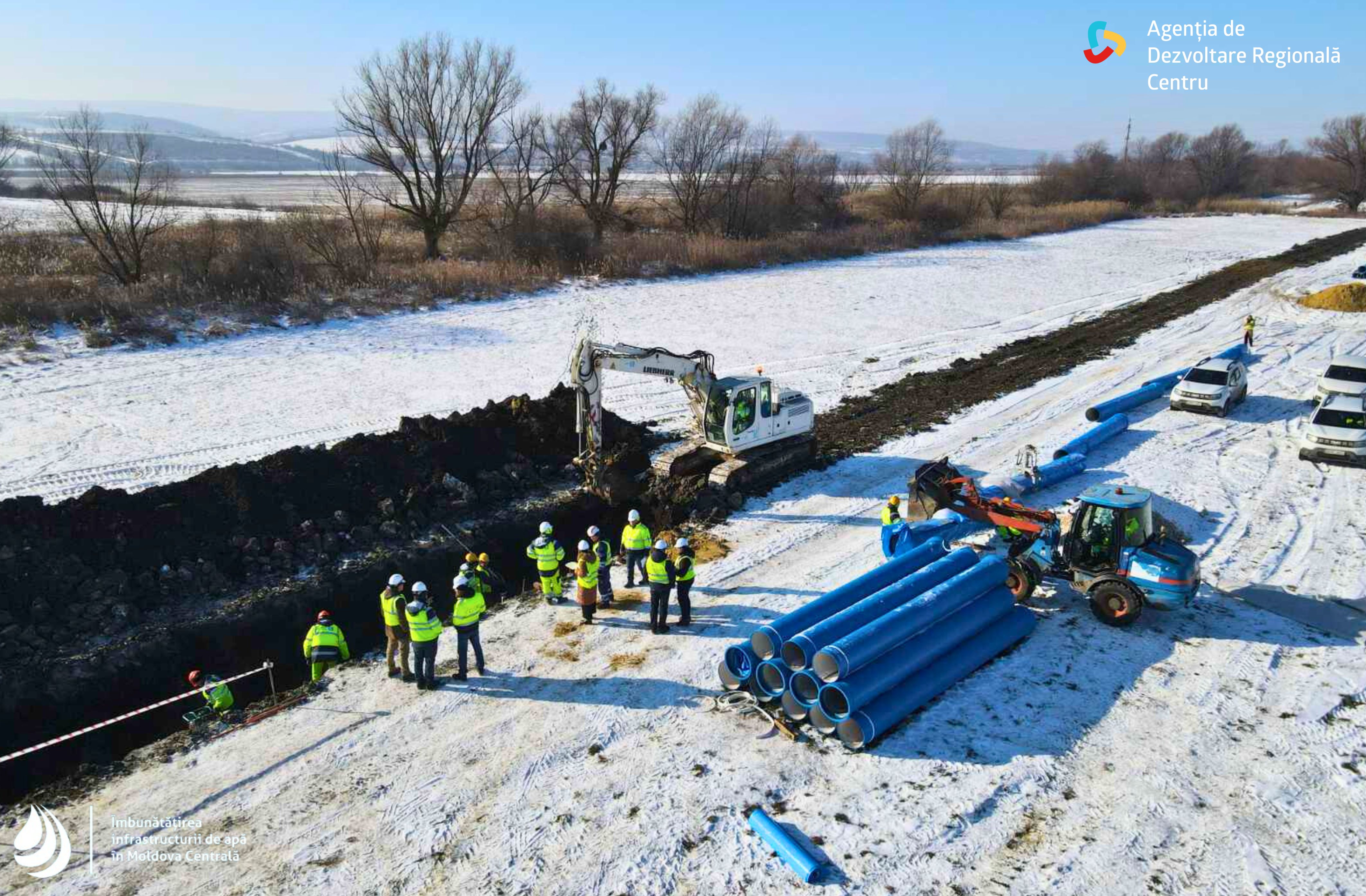 Prima - Noutăți/Anunțuri - PROIECT ÎN PROGRES/Îmbunătățirea infrastructurii de apă în Moldova Centrală: lucrări realizate responsabil, inclusiv pe timp de iarnă