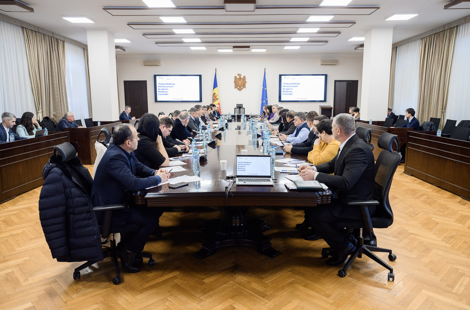 Asigurarea accesului cetățenilor la apă potabilă sigură și de calitate rămâne o prioritate majoră a autorităților publice centrale și locale. În acest context, miercuri, 21 ianuarie, la Ministerul Infrastructurii și Dezvoltării Regionale (MIDR), viceprim-ministrul Vladimir Bolea a prezidat o ședință de lucru dedicată perspectivelor de dezvoltare a infrastructurii de alimentare cu apă în raioanele Strășeni și Călărași. La ședință au participat reprezentanți ai autorităților publice locale, ai operatorilor regionali S.A. „Apă-Canal Strășeni" și S.A. „Apă-Canal Călărași", ai Agenției de Dezvoltare Regională Centru, precum și ai altor instituții implicate în implementarea proiectului „Îmbunătățirea infrastructurii de apă în Moldova Centrală". Progrese și perspective pentru extinderea serviciilor de apăDiscuțiile s-au axat pe stadiul lucrărilor de construcție a apeductului magistral Chișinău-Strășeni-Călărași, un proiect strategic la nivel național, precum și pe perspectivele de racordare la magistrală a altor localități din Regiunea Centru, în vederea extinderii accesului populației la servicii moderne de alimentare cu apă. Totodată, a fost analizat nivelul de pregătire instituțională și capacitatea tehnică a operatorilor regionali, necesare pentru preluarea și gestionarea eficientă a serviciului public de alimentare cu apă la nivel raional. Un subiect distinct al agendei a vizat delegarea în gestiune a sistemului de alimentare cu apă și semnarea contractelor de delegare către operatorii regionali din Strășeni și Călărași, aspect esențial pentru funcționarea durabilă a infrastructurii nou-create. Investiții pentru oameni și comunitățiConstrucția apeductului magistral Chișinău-Strășeni-Călărași face parte din proiectul „Îmbunătățirea infrastructurii de apă în Moldova Centrală", implementat de Agenția de Dezvoltare Regională Centru și finanțat de Guvernul Republicii Federale Germania, prin intermediul Băncii de Dezvoltare KfW. Valoarea totală a proiectului este de 45 milioane de euro, dintre care 40 milioane de euro sunt acordate sub formă de grant de către KfW, iar 5 milioane de euro reprezintă contribuția Guvernului Republicii Moldova - o investiție semnificativă în sănătatea, siguranța și bunăstarea cetățenilor. Cu o lungime de peste 50 de kilometri, apeductul va conecta sistemul centralizat de alimentare cu apă din municipiul Chișinău cu orașele Strășeni și Călărași, oferind o sursă sigură, durabilă și de calitate de apă potabilă. În prima etapă, peste 35.000 de locuitori din cele două orașe vor beneficia direct de această infrastructură modernă, urmând ca, pe termen mediu, beneficiile să fie extinse și către alte localități din regiune. ADR Centru: proiect strategic pentru viitorul regiuniiÎn cadrul ședinței, directorul Agenției de Dezvoltare Regională Centru a susținut o prezentare privind importanța proiectului și rolul acestuia în dezvoltarea durabilă a Regiunii Centru, subliniind impactul direct asupra calității vieții cetățenilor. „Apeductul Chișinău-Strășeni-Călărași nu este doar un proiect de infrastructură, ci un proiect strategic național, care pune în centrul său omul. Accesul la apă potabilă sigură înseamnă sănătate, siguranță și șanse egale de dezvoltare pentru comunități. Prin acest proiect, demonstrăm că investițiile publice și parteneriatele internaționale pot genera rezultate concrete și durabile pentru cetățeni", a menționat directorul ADR Centru. Agenția de Dezvoltare Regională Centru va continua să colaboreze activ cu autoritățile publice centrale și locale, precum și cu partenerii de dezvoltare, pentru a asigura implementarea eficientă a proiectului și valorificarea maximă a beneficiilor pentru locuitorii Regiunii Centru, reconfirmând angajamentul instituțiilor față de nevoile reale ale oamenilor. |