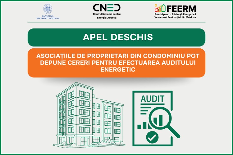Centrul Național pentru Energie Durabilă (CNED) anunță lansarea apelului de depunere a cererilor de participare pentru efectuarea rapoartelor de audit energetic pentru blocurile locative multietajate gestionate de Asociațiile de proprietari din condominiu (APC). Scopul acestui apel este de a sprijini APC-urile în evaluarea consumului actual de energie și identificarea soluțiilor eficiente de reducere a acestuia, prin implementarea măsurilor de eficiență energetică și valorificarea surselor regenerabile de energie. APC-urile care vor beneficia de suport în elaborarea raportului de audit energetic vor putea accesa, ulterior, finanțare pentru elaborarea documentației de proiect cât și implementarea măsurilor de eficiență energetică și valorificarea surselor de energie regenerabilă, cofinanțate prin programul guvernamental FEERM. „Evoluțiile acestui produs de finanțare din cadrul programului guvernamental FEERM ne-a determinat să intervenim cu unele ajustări pentru a oferi mai multă flexibilitate potențialilor beneficiari dar și o valorificare mai eficientă a bugetului alocat în acest sens. Totodată, intrarea în faza de implementare reală a proiectelor ne permite să ne axăm eforturile în scalarea produsului pentru a ajunge la cât mai mulți beneficiari care să poată să-și reducă pierderile de căldură, diminueze facturile la energie și să-și sporesc confortul", a declarat Ion Muntean, directorul Centrului Național pentru Energie Durabilă. Asociațiile de Proprietari din Condominiu care vor beneficia de Raportul de audit energetic vor fi eligibile pentru Componenta II - documentație de proiect, conform produsului de finanțare „Eficiența energetică a blocurilor locative", iar ulterior de a aplica la Componenta III - lucrări de construcții și obținerea unui grant de până la 70% din valoarea investiției eligibile prin Fondul pentru Eficiență Energetică în sectorul Rezidențial din Moldova (FEERM). Contribuția locatarilor reprezintă 30%. De asemenea, în funcție de gradul de vulnerabilitate energetică, proprietarii pot beneficia suplimentar de alocații din Fondul de Reducere a Vulnerabilității Energetice, acoperind între 15% și 90% din contribuția proprie. Pentru elaborarea Raportului de audit energetic APC va achita, în avans, o contribuție inițială de 10% din costul total al serviciului. Totodată, APC-urile care beneficiază de finanțare pentru auditul energetic trebuie să continue implementarea proiectului, participând la elaborarea documentației de proiect și executarea lucrărilor de construcții pentru realizarea măsurilor de reabilitare energetică a blocului locativ. În cazul în care APC nu depune cererea de finanțare pentru elaborarea documentației de proiect, aceasta va restitui integral costul Raportului de audit energetic suportat de CNED. Noutatea acestui apel este că sunt eligibile și clădirile date în exploatare după 2005, dacă acestea nu au implementat anterior lucrări de izolare termică a pereților și/sau acoperișului. Pentru a fi eligibilă în cadrul prezentului apel, fiecare APC trebuie să îndeplinească cumulativ următoarele criterii: