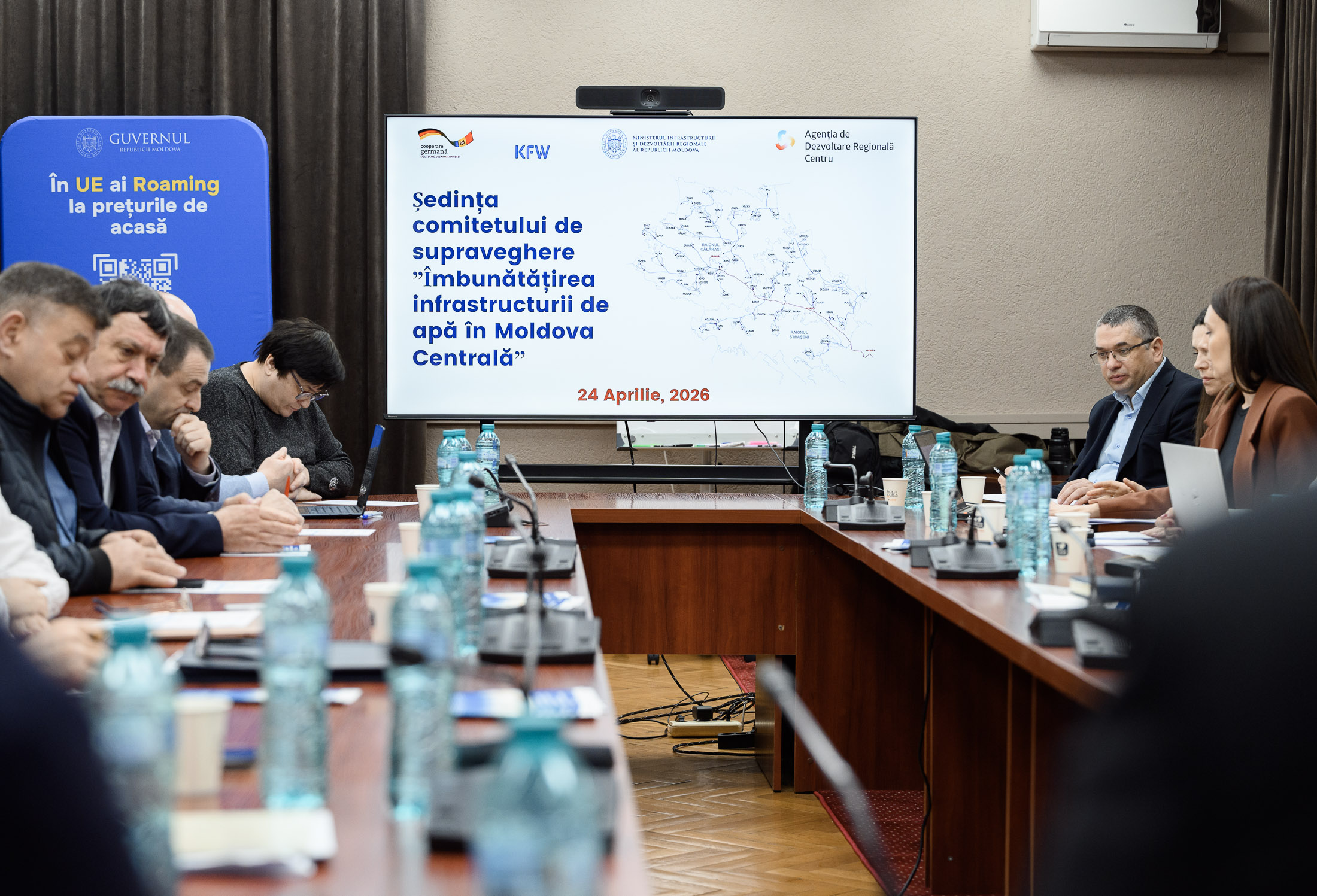 68 Accesări Chișinău, 24 aprilie 2026 - Membrii Comitetului de Supraveghere a proiectului „Îmbunătățirea infrastructurii de apă în Moldova Centrală" s-au întrunit vineri, 24 aprilie 2026, într-o ședință de lucru organizată de Unitatea de Implementare a Proiectelor Externe cu Finanțare Germană din cadrul Agenției de Dezvoltare Regională Centru. Evenimentul a avut loc în incinta Ministerului Infrastructurii și Dezvoltării Regionale. Ședința a reunit reprezentanți ai Ministerului Infrastructurii și Dezvoltării Regionale, ai Băncii Germane de Dezvoltare KfW - partenerul financiar al proiectelor, ai ADR Centru, ai autorităților publice locale din municipiul Strășeni, orașul Călărași și localitățile beneficiare, precum și ai altor instituții implicate în implementarea acestor inițiative de importanță strategică. Discuțiile s-au concentrat pe progresul înregistrat în cadrul proiectului de construcție a apeductului magistral Chișinău-Strășeni-Călărași, precum și pe activitățile planificate în cadrul noului proiect „Program Deschis de Dezvoltare Urbană în Moldova". Acesta prevede, printre altele, construcția unei noi stații de captare a apei din râul Nistru, menită să asigure debitul necesar de apă pentru municipiul Chișinău, orașele Strășeni și Călărași, precum și pentru mai multe localități rurale din aria proiectului. În cadrul ședinței, Viceprim-ministrul și Ministrul Infrastructurii și Dezvoltării Regionale, Vladimir Bolea, a subliniat importanța sprijinului oferit de partenerii germani pentru dezvoltarea infrastructurii de apă din centrul țării: Managerul Unității de Implementare a Proiectelor Externe cu Finanțare Germană din cadrul ADR Centru a prezentat un raport detaliat privind evoluția proiectului „Îmbunătățirea infrastructurii de apă în Moldova Centrală". Conform datelor prezentate, lucrările au avansat considerabil în trimestrul I al anului curent, fiind construiți până în prezent peste 30 km de conductă magistrală din fontă ductilă, cu diametre între 500 și 600 mm. Totodată, lucrările la cămine sunt în desfășurare, iar progresul la Stația principală de pompare Tuzara și la rezervoarele noi este constant. Un alt subiect important a vizat gestionarea serviciilor de alimentare cu apă în zona de implementare a proiectului, inclusiv nivelul de pregătire a operatorilor regionali S.A. „Apă Canal Strășeni" și S.A. „Apă Canal Călărași", implementarea planurilor de reorganizare, precum și semnarea contractelor de delegare a serviciilor de aprovizionare cu apă pentru localitățile din Faza II a proiectului: Sireți, Tuzara, Seliștea Nouă, Bucovăț și Sipoteni. În cadrul aceleiași ședințe, coordonatorul proiectului „Program Deschis de Dezvoltare Urbană în Moldova" din cadrul ADR Centru a prezentat acțiunile planificate pentru perioada următoare. Proiectul a fost lansat oficial pe 23 aprilie 2026, prin semnarea acordurilor de finanțare și implementare. Proiectul este implementat de Guvernul Republicii Moldova, prin Ministerul Infrastructurii și Dezvoltării Regionale și ADR Centru, cu o finanțare nerambursabilă de 14 milioane de euro oferită de Guvernul Federal German prin intermediul Băncii Germane de Dezvoltare KfW, o contribuție de 7,6 milioane de euro din partea Guvernului Republicii Moldova, prin Fondul Național pentru Dezvoltare Regională și Locală, și 2 milioane de euro din partea municipiului Chișinău. Acest proiect este complementar inițiativei „Îmbunătățirea infrastructurii de apă în Moldova Centrală", care presupune construcția apeductului magistral Chișinău-Strășeni-Călărași și conectarea acestuia la sistemul operat de „Apă Canal Chișinău", în calitate de furnizor de apă în vrac și viitor operator al infrastructurii. Valoarea totală a investiției se ridică la 45 de milioane de euro. La finalul ședinței, membrii Comitetului de Supraveghere au agreat planul de activități pentru perioada următoare, subliniind necesitatea accelerării implementării acțiunilor planificate, în vederea asigurării accesului durabil la servicii moderne de alimentare cu apă pentru cetățenii din Regiunea Centru. |